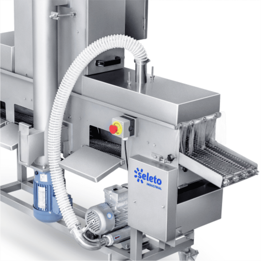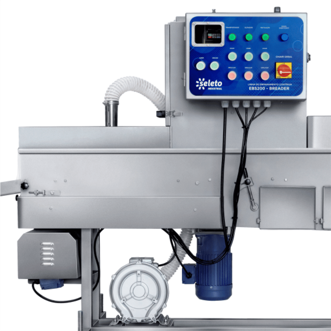 Com sistema de revestimento superior e inferior, a EBS200 garante que cada peça receba empanamento uniforme. As lâminas de ar removem excessos e os rolos de compactação fixam o empanado, resultando em aderência total e acabamento consistente.